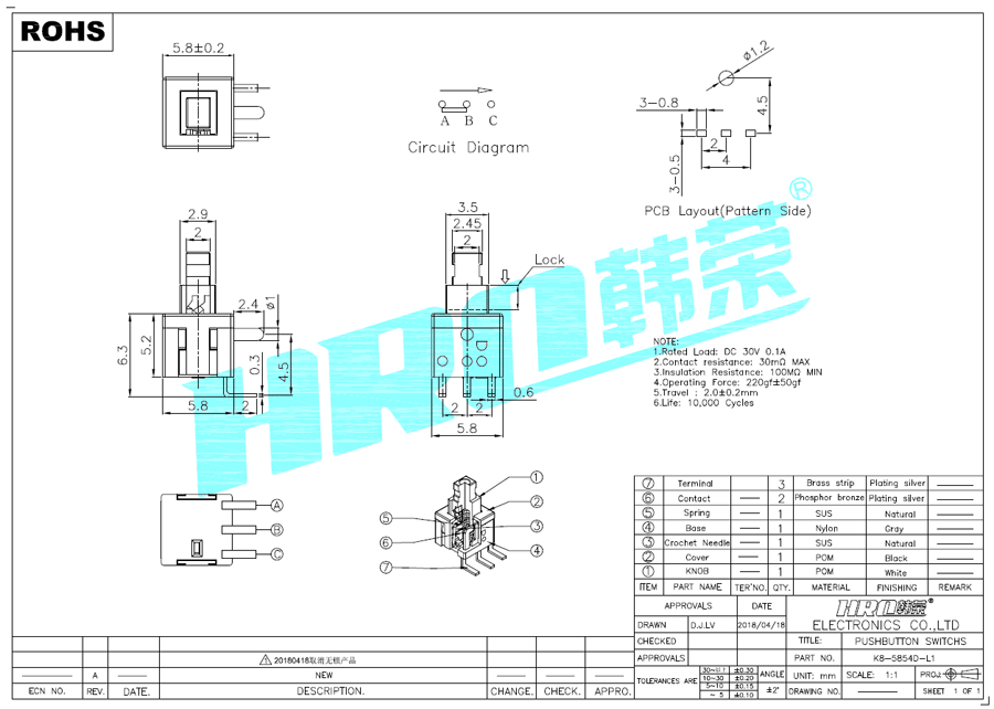 3. 绝缘阻抗: DC 250V ≥100mΩ