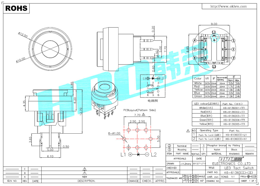规格:¢12.50mm*H12.50mm操作力:160gf/250gf类型:自锁/无锁